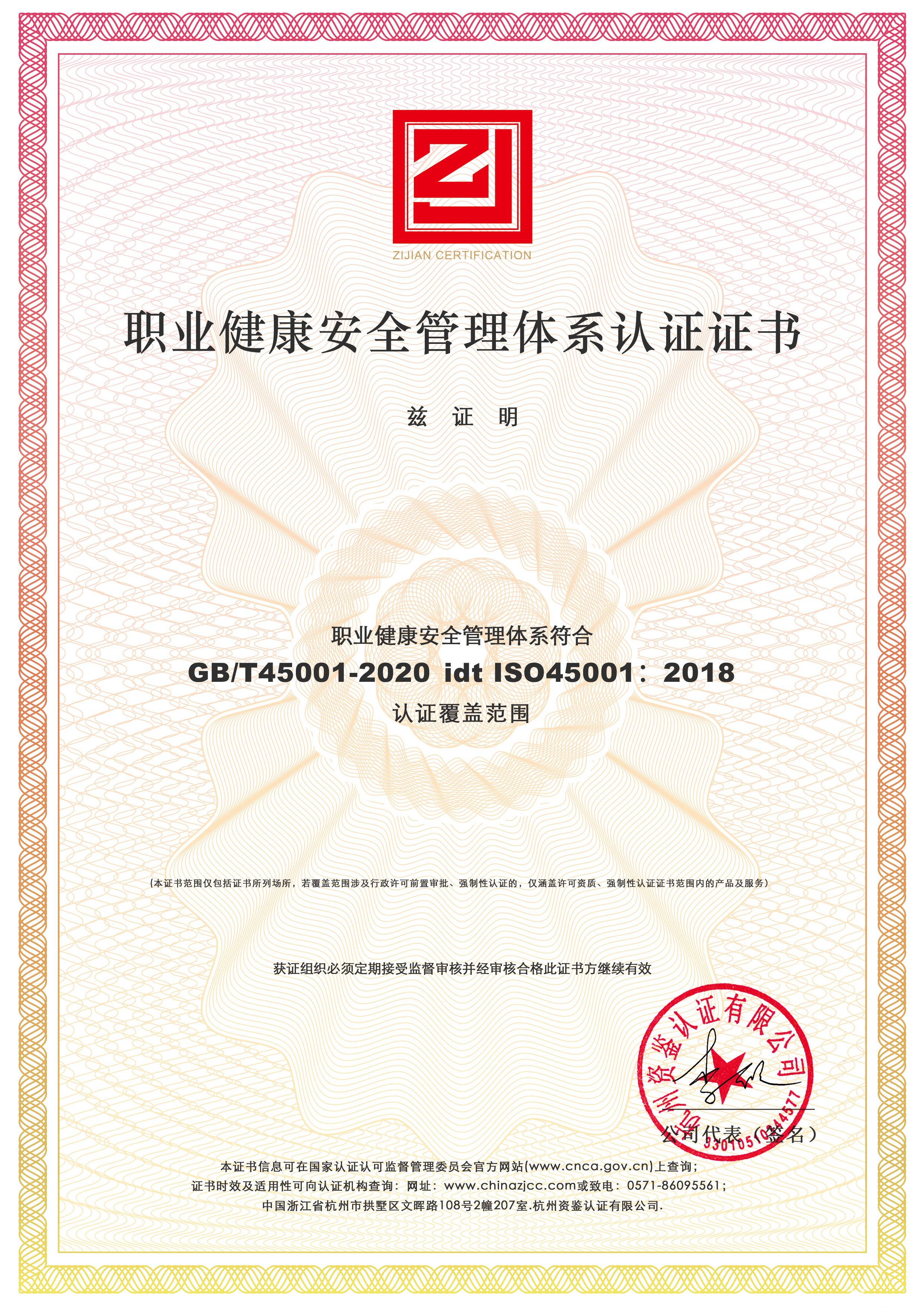 管理体系认证证书